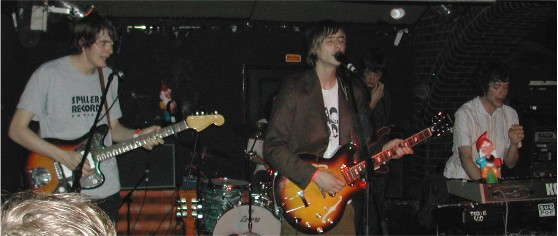 Jim Noir playing as a 5 piece attracted a sell out crowd tonight. Unfortunately a few of the kids who had managed to get in with their fake IDs had also managed to drink enough to think it would be clever to be obnoxious for the first few numbers, only shutting up their pathetic heckles and interruptions when threatened by the rest of the crowd. Fighting a dreadful sound, the band did their best to get across the vocal harmonies and play their part Beatles, part Beach Boys and part Nursery Rhyme tunes to the now appreciative crowd. Standout tracks were the singles Eanie Meanie, Key of C and encore finale My Patch complete with ukulele accompaniment. Lots of promise but a missed opportunity in so many ways. Loved the gnomes, I think they may be breeding though!